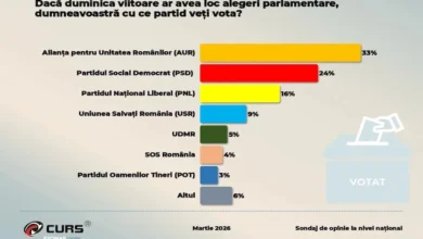 Sondaj CURS martie 2026: AUR rămâne pe primul loc, dar pierde teren, în timp ce PSD își revine. Nemulțumirea românilor față de criza carburanților atinge cote alarmante